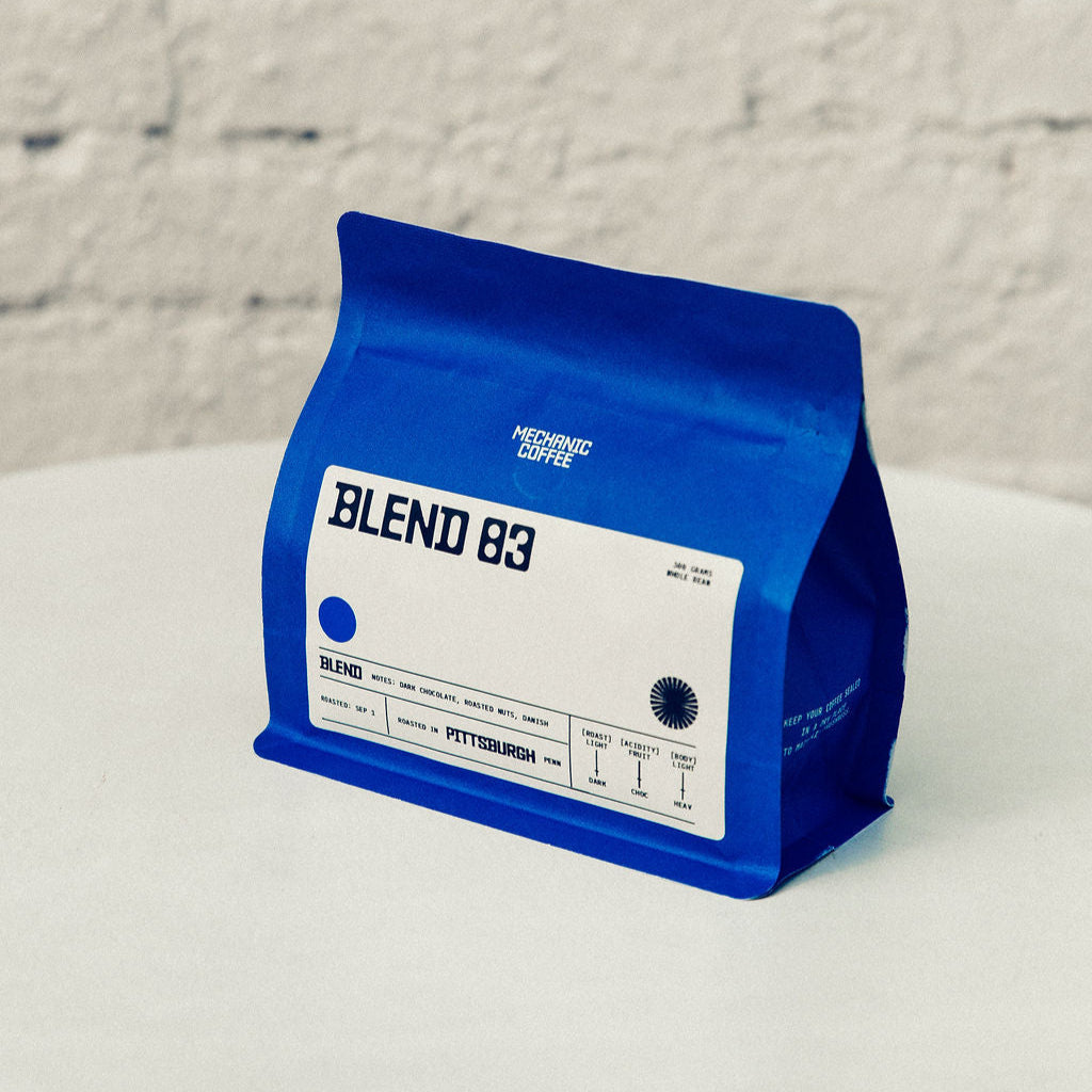 Blend 83 has everything you’d want in a cup at a family gathering. You can expect notes of dark chocolate, roasted nuts, and danish. This coffee is our most developed roast (Darker roast) to date and offers an approachable body that everyone can enjoy.
